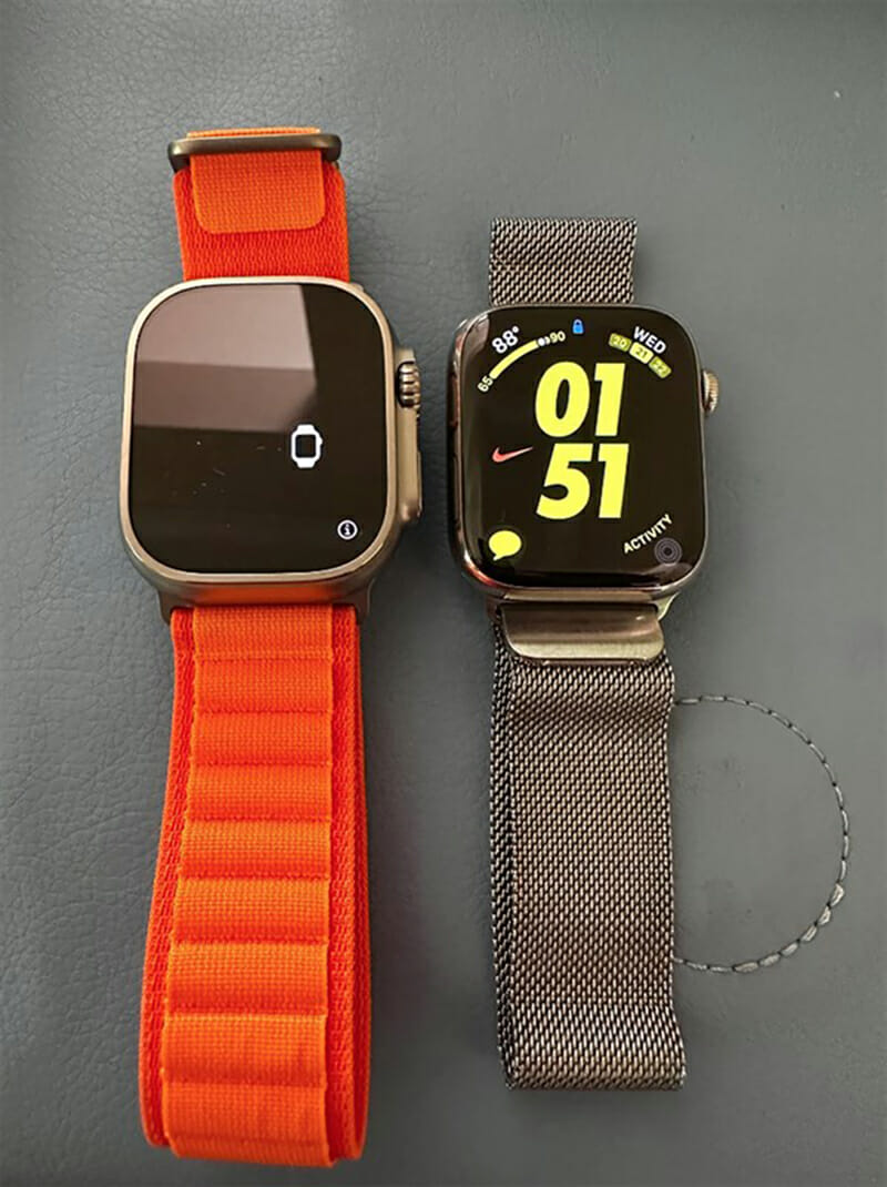 Khách hàng may mắn trên cũng đã chia sẻ một số bức ảnh của Apple Watch Ultra cùng với Apple Watch 45 mm. Người mua cũng đã đề cập đến một số vấn đề về Apple Watch Ultra, chẳng hạn như là dây đeo Alpine Loop rất khó đeo và khó tháo hơn.