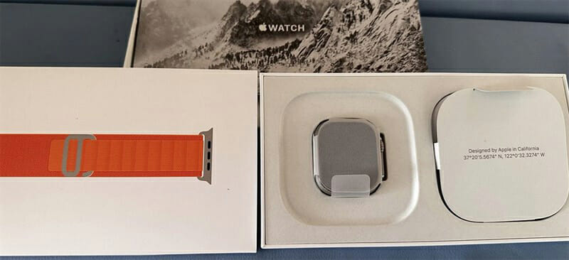 Thông qua hình ảnh, cho thấy Apple Watch Ultra xuất hiện trong một chiếc hộp có thiết kế khác so với các mẫu Apple Watch khác. Đồng thời kích thước của mẫu Apple Watch Ultra cũng lớn hơn nhiều so với bản tiêu chuẩn.