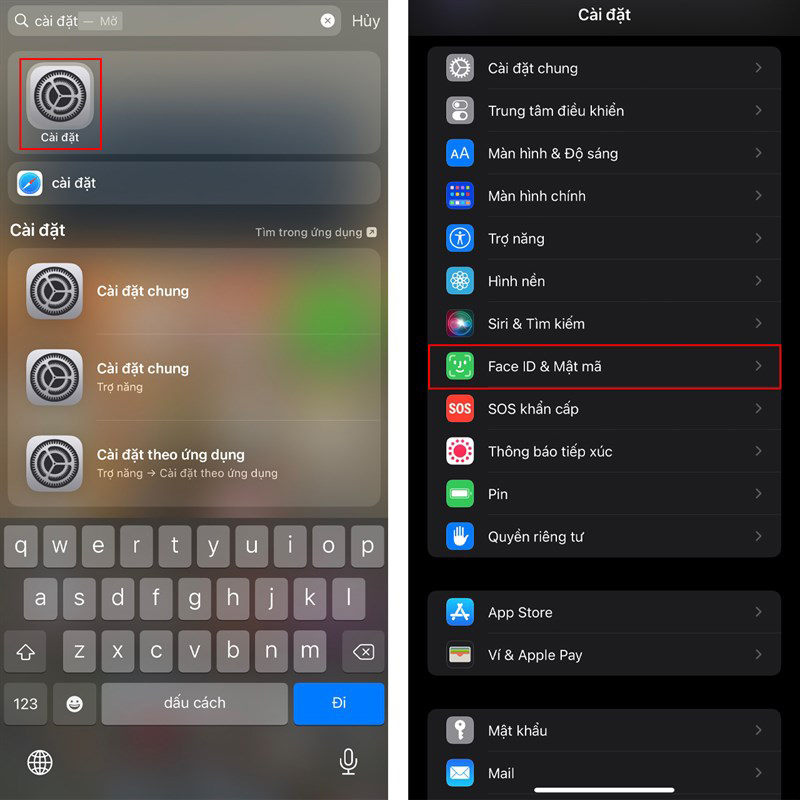 Bước 1: Người dùng hãy truy cập Cài đặt > Chọn Face ID & Mật mã để bắt đầu tiến hành việc cài đặt an toàn cho ví Apple Pay nha.
