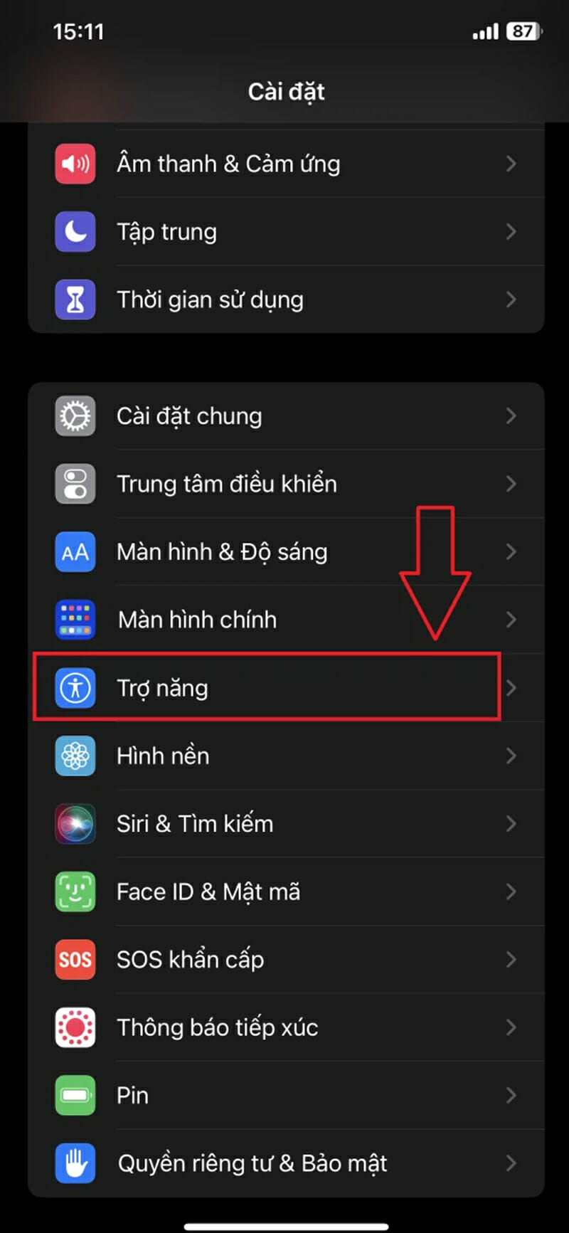 Bước 2: Khi đã vào được phần Cài đặt, người dùng hãy chọn mục Trợ năng ở dưới.