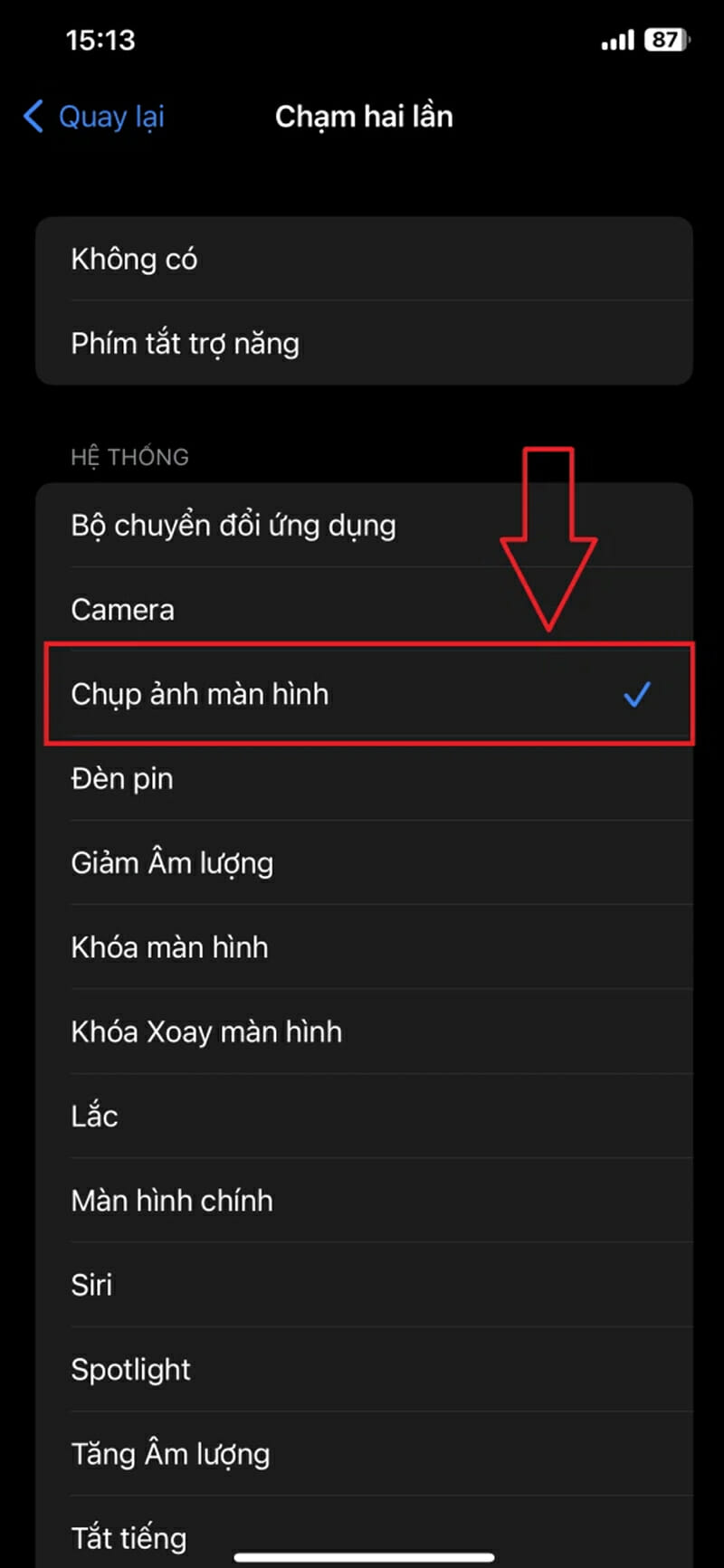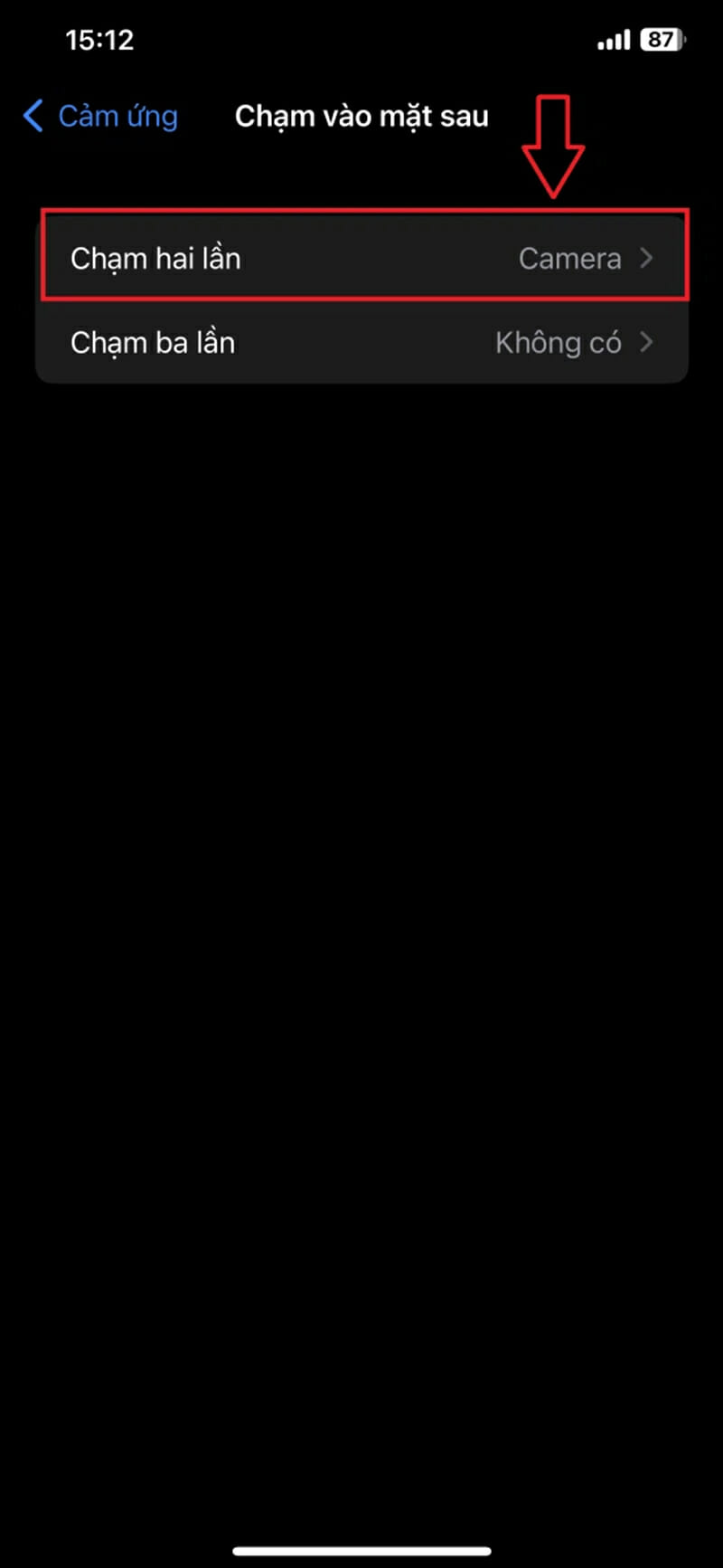 Bước 5: Lúc này người dùng sẽ thấy có hai mục Chạm hai lần và Chạm ba lần. Chúng tương ứng với số lần thao tác mà người dùng phải chạm vào mặt lưng ở phía sau của iPhone. Chọn tiếp mục Chạm hai lần để thay đổi tùy chọn thích hợp dành cho thao tác này.