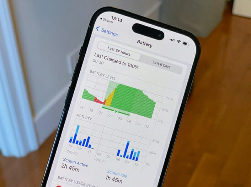 iPhone 14 Pro có viên pin nhỏ hơn iPhone 14 chỉ 3.200mAh tuy nhiên nó lại có thời gian sử dụng lâu hơn một chút tới 10 giờ 13 phút. Lý do là vì iPhone 14 Pro được trang bị bộ vi xử lý A15 Bionic tiết kiệm hiệu năng hơn. Thiết bị còn có màn hình có thể tự điều chỉnh tần số quét từ 1 – 120Hz trong khi iPhone vẫn dùng con chip A15 và giữ nguyên tần số quét 60Hz.