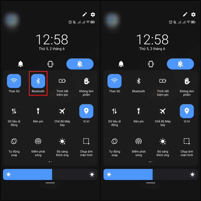 Đầu tiên người dùng kéo từ trên xuống dưới để mở bảng điều khiển tắt trên điện thoại. Nhấn vào biểu tưởng Bluetooth để tắt nó đi nếu như thiết bị đang bật.