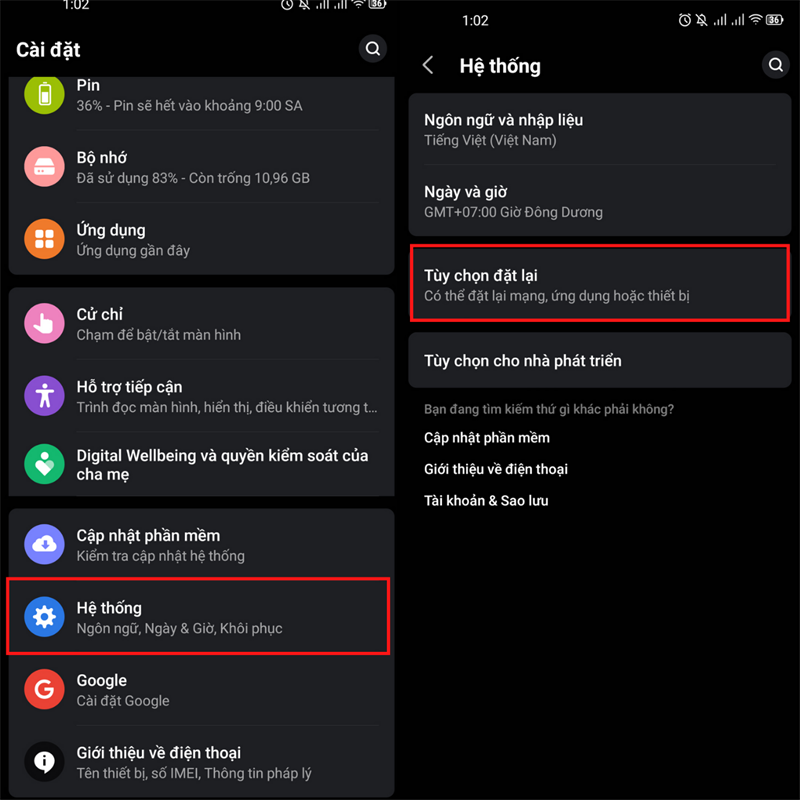 Bước 1: Đầu tiên người dùng vào Cài đặt, chọn Hệ thống > Sau đó Tùy chọn đặt lại.