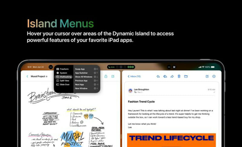 Với màn hình lớn hơn nhiều so với mẫu iPhone, Dynamic Island trên iPad thậm chí còn có thể gây được nhiều ấn tượng hơn. Ortolani tin rằng, thanh menu chuyên dụng nhiều khả năng sẽ được đưa vào Dynamic Island trên mẫu iPad trong tương lai.