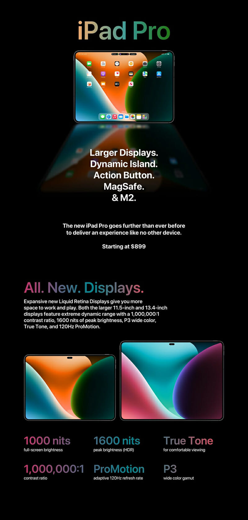 Theo một số nguồn tin rò rỉ gần đây, iPad Pro thế hệ tiếp theo có thể sẽ đi kèm với viền mỏng hơn và logo iPad ở mặt lưng được làm lớn hơn nhằm hỗ trợ sạc không dây MagSafe. Hiện tại, vẫn chưa có thông tin nào cho thấy việc Apple sẽ đưa Dynamic Island lên iPad Pro mới. Tuy nhiên, sau nhiều năm gắn bó với phần notch tai thỏ, vốn đã trở nên nhàm chán. Và hiện người dùng đang rất mong đợi Apple sẽ có cập nhật mới trên các sản phẩm của mình trong tương lai.