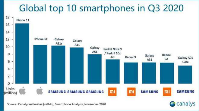 Theo số liệu từ Canalys, Apple đã bán được 16 triệu chiếc iPhone 11, trong khoảng từ tháng 7 đến tháng 9. Apple đạt được con số này ngay trong khi tình hình dịch bệnh Covid-19 vẫn đang diễn biến phức tạp. Nền kinh tế toàn cầu cũng bị ảnh hưởng, và người dùng có xu hướng lựa chọn những thiết bị công nghệ có giá bán phải chăng hơn. Giờ đây, Apple đã ra mắt phiên bản kế nhiệm của iPhone 11 là iPhone 12. Điều đó cũng có nghĩa rằng iPhone 11 sẽ sớm đánh mất danh hiệu số 1 của mình, và iPhone 12 có thể sẽ thay thế vị trí đó.