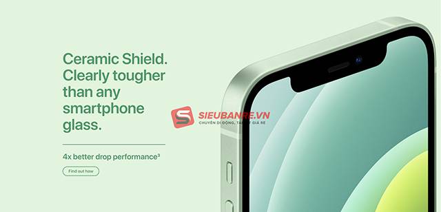 Màn hình iPhone 12 hiện được bảo vệ với lớp kính Ceramic Shield mới. Nó được phát triển với sự hợp tác của Apple và Corning. Lớp kính này bao gồm các tinh thể gốm sứ nano được tích hợp bên trong, giúp cho Apple khẳng định chiếc iPhone này sở hữu “mặt kính smartphone bền nhất”.