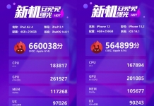 iPhone 12 và iPad Air 2020 dù dùng chipset A14 Bionic, điểm số AnTuTu cho ra trên iPad Air 2020 vượt trội hơn hẳn, cao hơn gần 17% so với iPhone 12. Trong đó, hiệu năng CPU của iPad Air 2020 cao hơn 9,5% và GPU hơn 30%. Hai thiết bị trong bài kiểm tra đều có chung mức RAM 4 GB và bộ nhớ trong 256 GB.