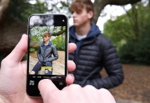 Tiêu cự ống kính của smartphone thường rất ngắn và hầu hết là ống kính góc rộng. Chính vì thế để có một bức hình chân dung đẹp người dùng nên di chuyển lại gần người mẫu hơn và vừa di chuyển người dùng vừa căn góc lấy hậu cảnh nha.