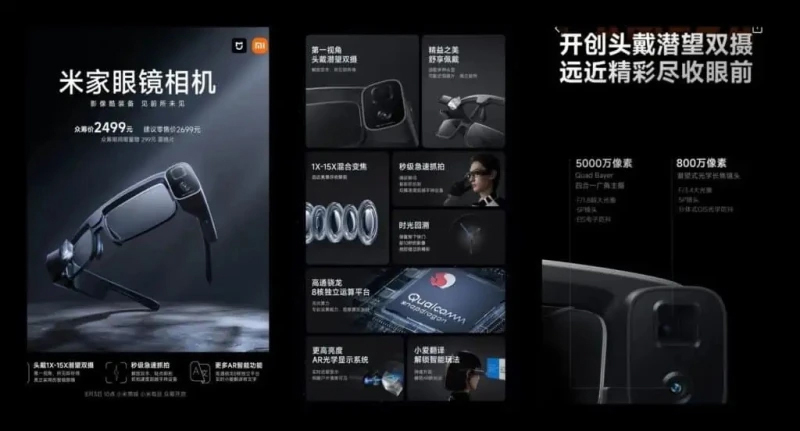 Nhìn vào thiết bị có thể thấy Xiaomi đã chọn kiểu dáng thiết kế Robocop thông thường thay vì cố gắng tạo ra một thiết bị thời trang. Chiếc kính này nặng khoảng 100g, bên trái nó còn có một camera chính 50MP và camera tiềm vọng 8MP. Nó có khả năng zoom quang học 5x đi cùng với một tính năng ổn định hình ảnh quang học.